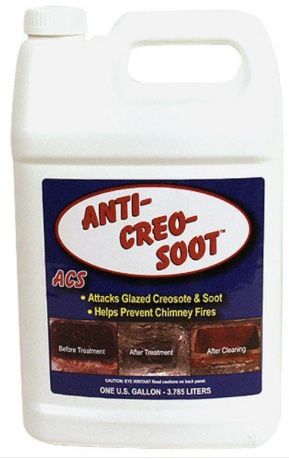 Anti-Creo-Soot Creosote Remover is composed of a non-flammable manganese-based liquid catalyst. Spray this product daily on firewood, inside the fire chamber, flue outlet and damper area. As the product is dispersed throughout the chimney flue, it helps to break down hard and tarry creosote into ash, which can then be easily removed with a chimney brush. Available in both quart and gallon sizes.