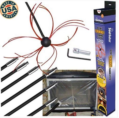 This SootEater Rotary Chimney Cleaning System is designed to clean and maximize efficiency of your wood or coal stove and fireplace. This complete chimney cleaning kit allows you to clean multiple flue sizes and shapes up to 18 feet long. Additional 3 foot rods are sold separately.