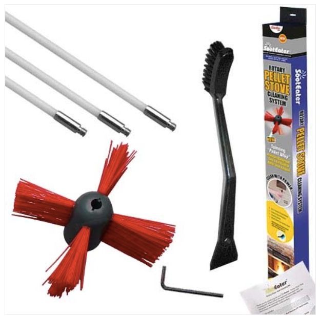 Clean your pellet stove and increase efficiency at the same time with SootEater Rotary Pellet Stove Cleaning System! The brush head clears away ash and soot buildup, and the long handled brush and angled bristles make cleaning corners and edges easier than ever before. The scraper end removes harder, more challenging creosote buildup. Please note, additional rods are needed if your pellet stove chimney is longer than 9 feet in length.
