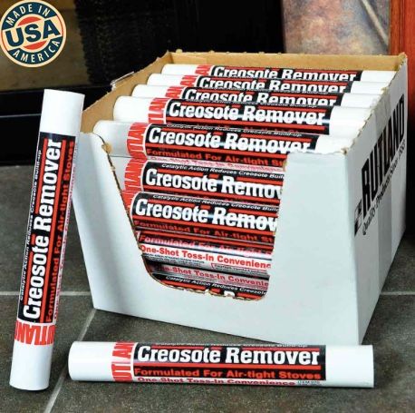 Improve your chimney cleaning experience with hardly any effort! Rutland Toss-In Creosote Remover is composed of a solid granular material that is activated by heat. Simply toss the pre-measured tube into a brisk fire - that’s it! This product will then break down hard, stubborn creosote in the chimney flue and reduce it to a powder, making for easy clean up! Use two tubes per week for the first month, then one tube per week for the rest of the heating season.